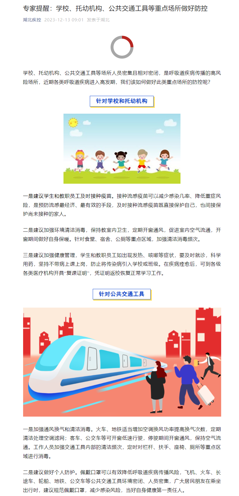 專家提醒:學校、托幼機構、公共交通工具等重點場所做好防控