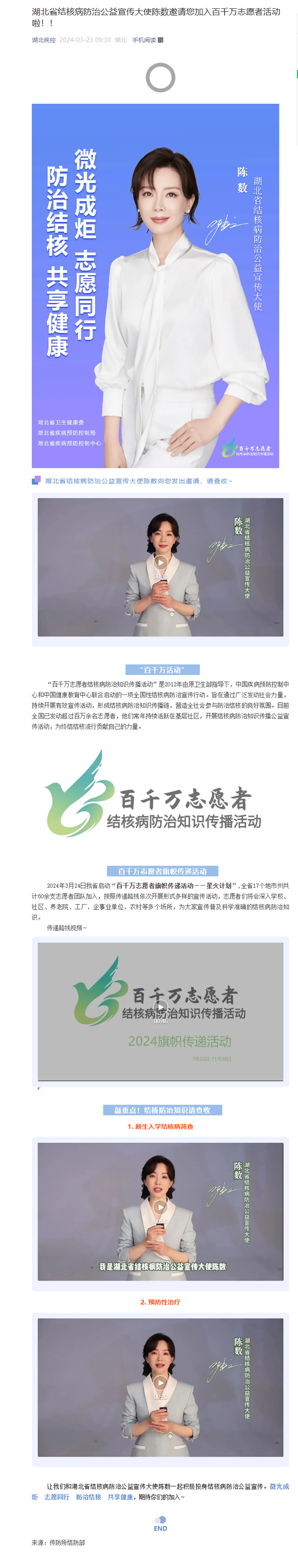 湖北省結(jié)核病防治公益宣傳大使陳數(shù)邀請(qǐng)您加入百千萬志愿者活動(dòng)啦!!