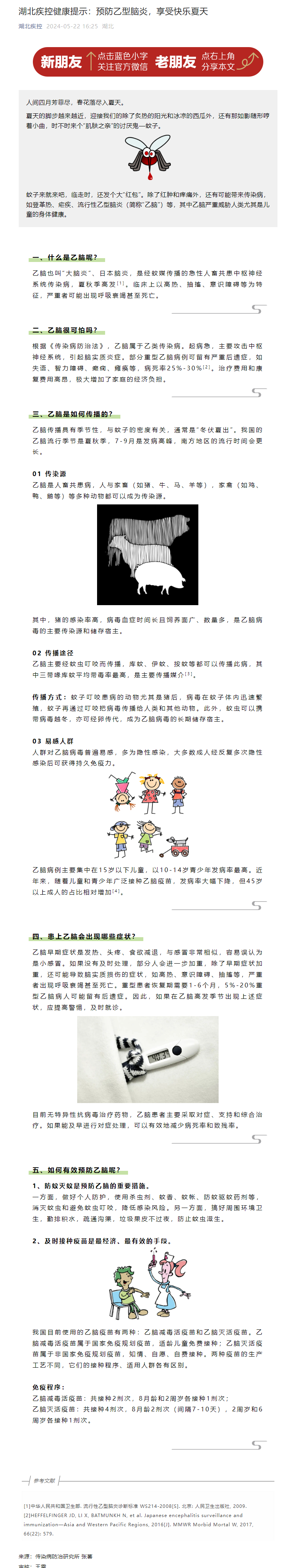 湖北疾控健康提示:預防乙型腦炎,享受快樂夏天
