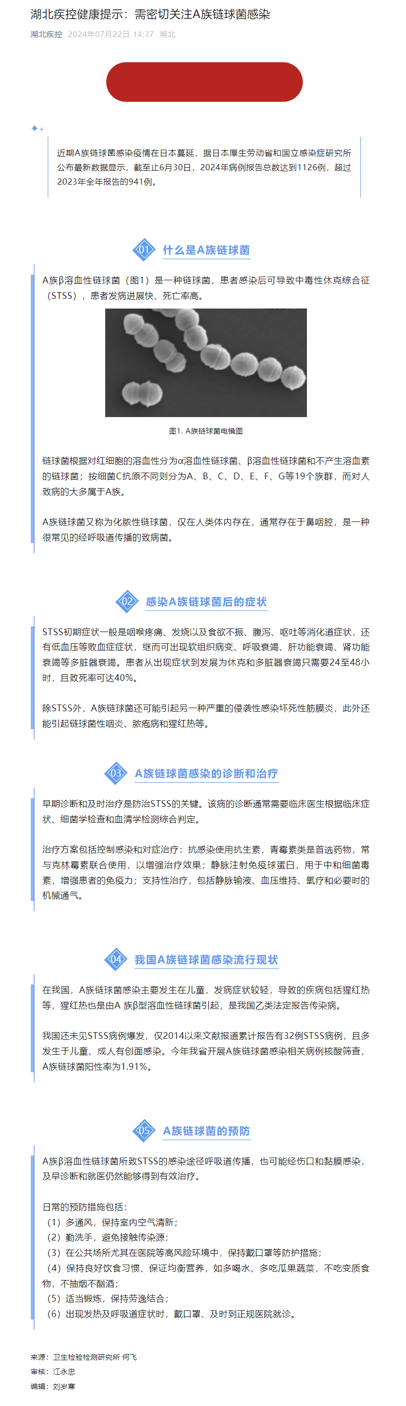 湖北疾控健康提示:需密切關注A族鏈球菌感染