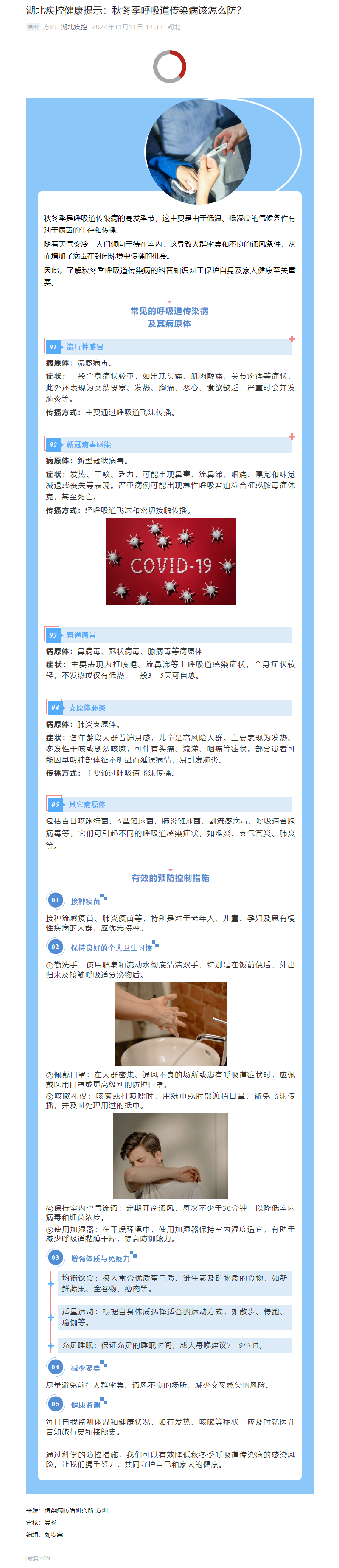 湖北疾控健康提示:秋冬季呼吸道傳染病該怎么防?