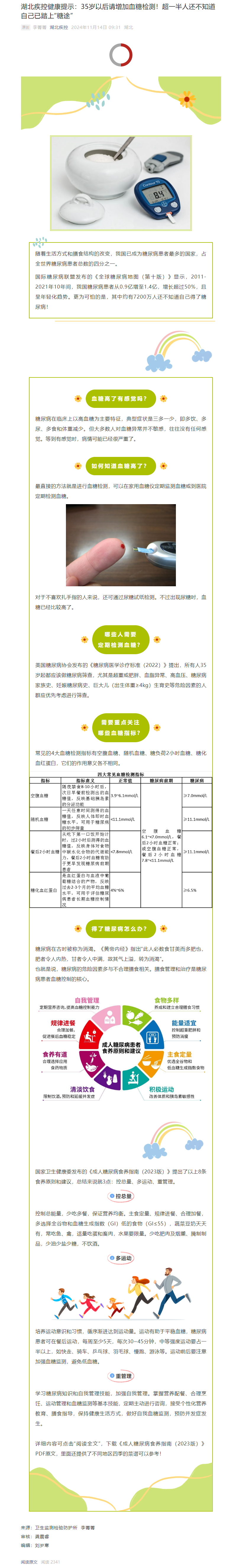 湖北疾控健康提示:35歲以后請增加血糖檢測!超一半人還不知道自己已踏上“糖途”