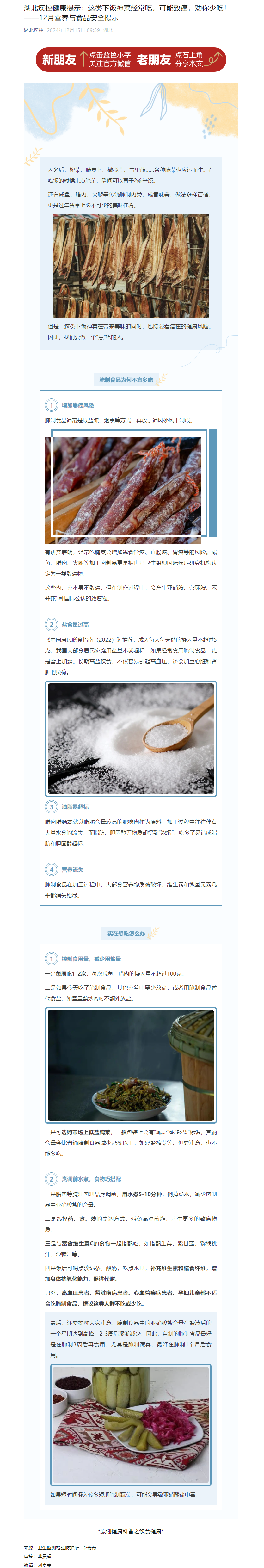 湖北疾控健康提示:這類下飯神菜經常吃,可能致癌,勸你少吃!——12月營養與食品安全提示