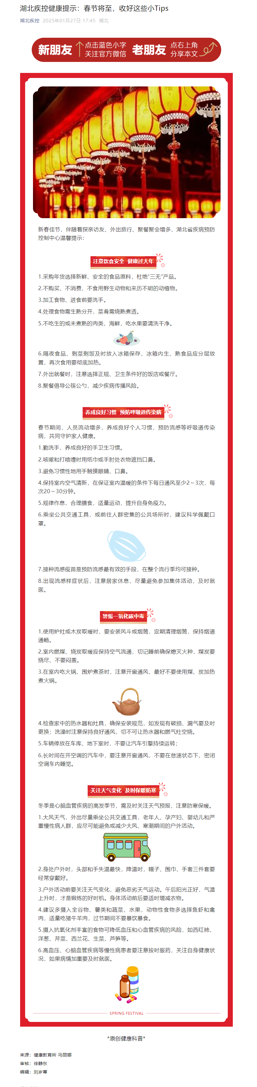 湖北疾控健康提示:春節將至,收好這些小Tips