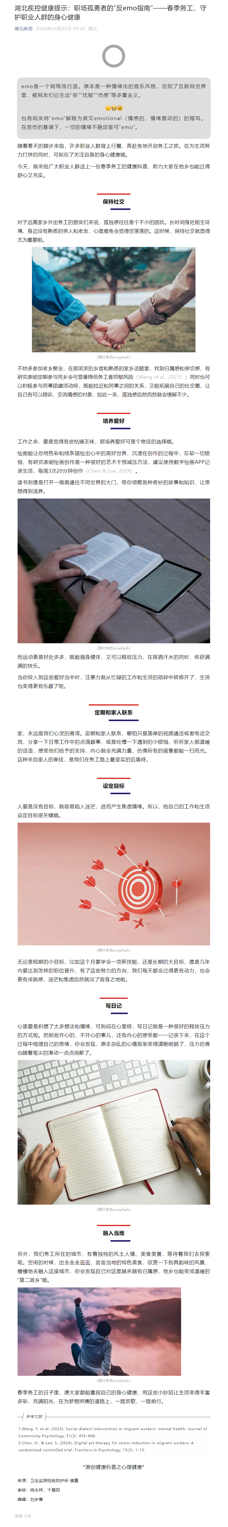 湖北疾控健康提示:職場孤勇者的“反emo指南”——春季務工,守護職業人群的身心健康