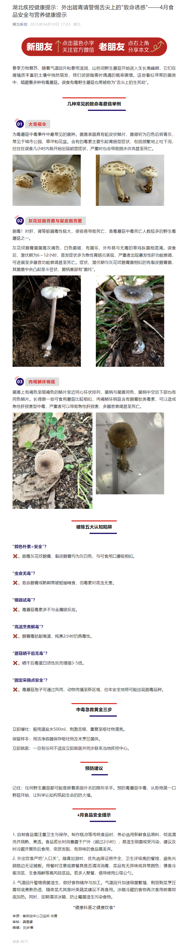 湖北疾控健康提示:外出踏青請警惕舌尖上的致命誘惑——4月食品安全與營養健康提示