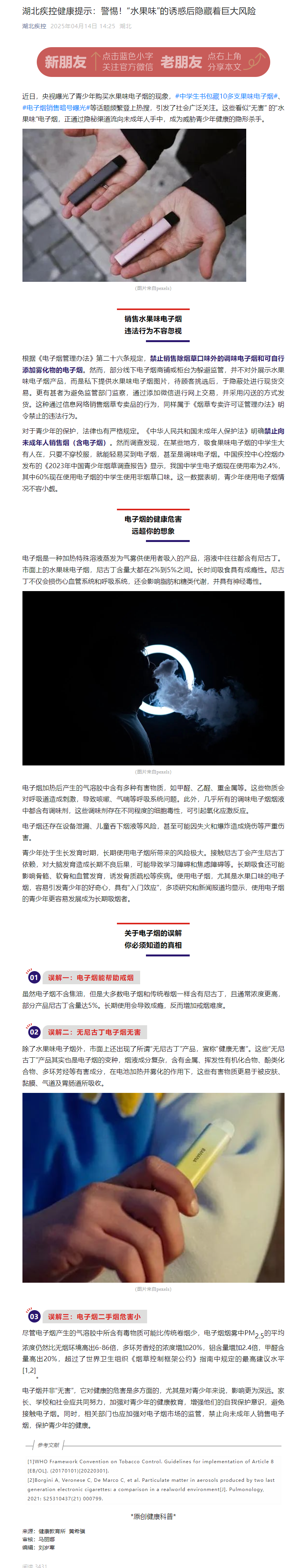 湖北疾控健康提示:警惕!“水果味”的誘惑后隱藏著巨大風險