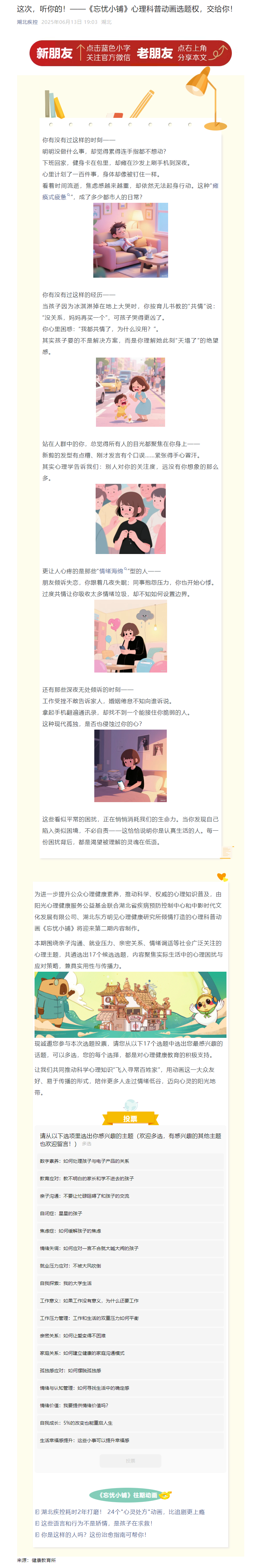 這次,聽你的!——《忘憂小鋪》心理科普動畫選題權,交給你!