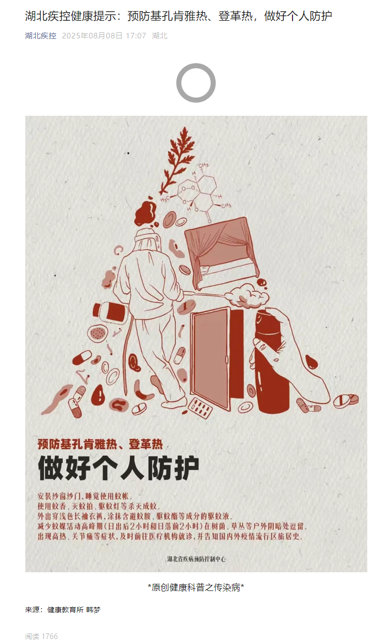 湖北疾控健康提示:預(yù)防基孔肯雅熱、登革熱,做好個人防護