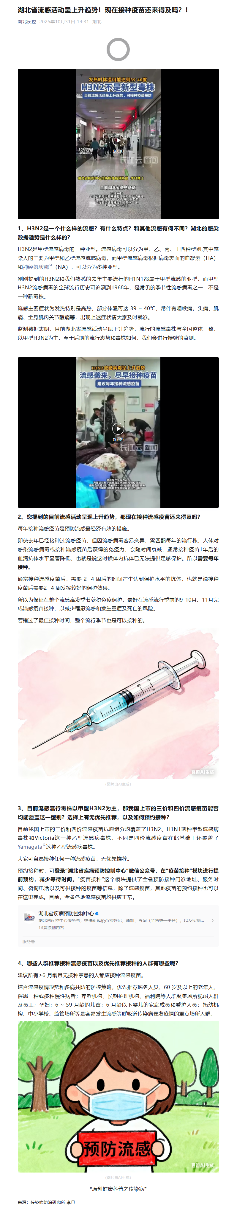 湖北省流感活動呈上升趨勢!現在接種疫苗還來得及嗎?!