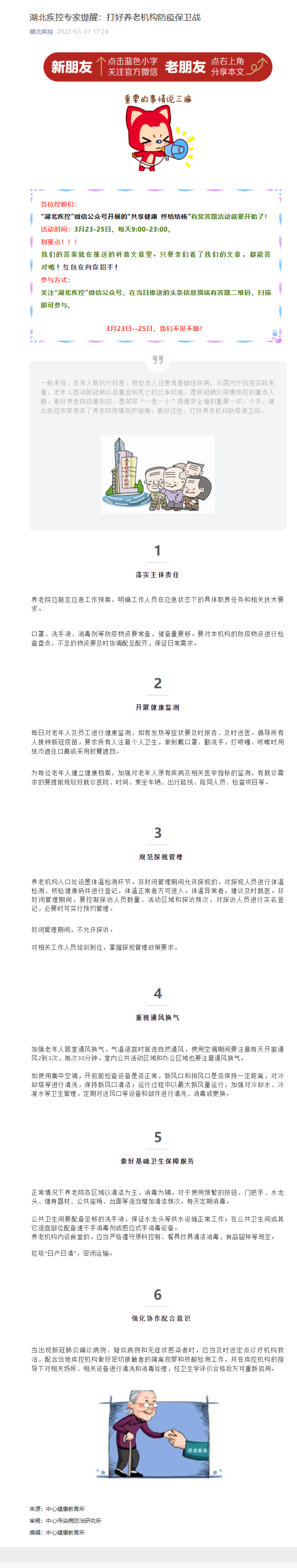 湖北疾控專家提醒:打好養老機構防疫保衛戰