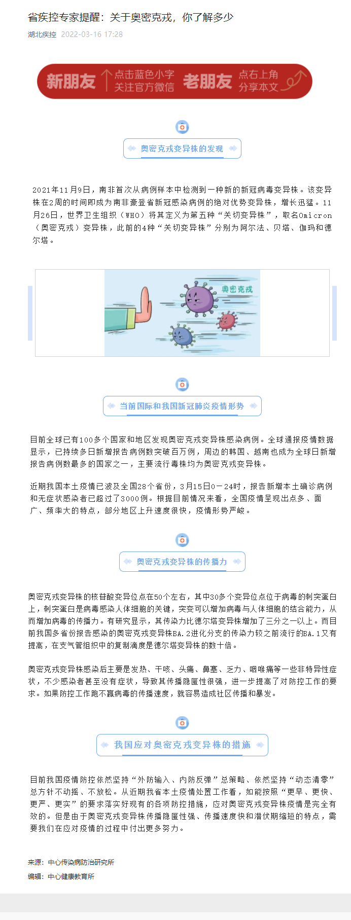 省疾控專家提醒:關于奧密克戎,你了解多少