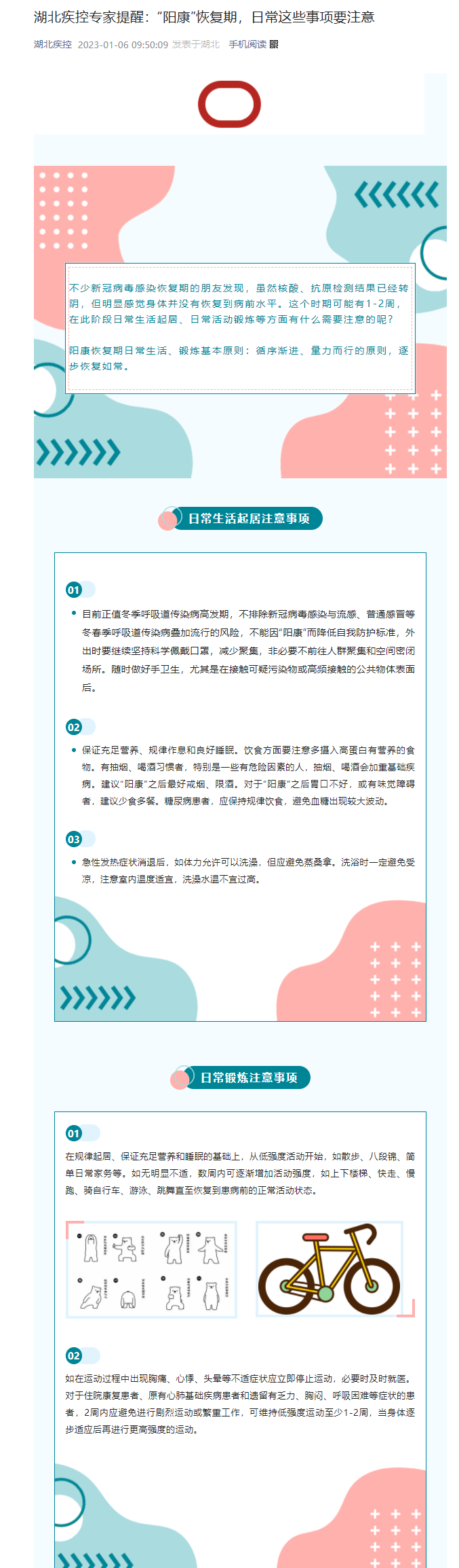湖北疾控專家提醒:“陽康”恢復期,日常這些事項要注意