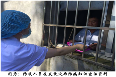 “水災(zāi)之后要清除垃圾、污物、管理好糞便,不喝生水、不吃腐敗變質(zhì)或被洪水浸泡過的食物。”公共衛(wèi)生科室防疫人員邊向村民發(fā)放衛(wèi)生防病健康知識(shí)宣傳單,邊講解注意事項(xiàng),“沒想到衛(wèi)生防疫人員來得這么快。人民群眾健康有保障了。”村主任曹加喜高興地說。