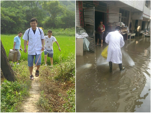 7月12日,大冶市四醫院組織兩組災后衛生應急消殺隊伍共8人,攜帶消毒藥品、器械及災后防病知識宣傳單,一組前往受災較為嚴重暫未退水的三元閣棗園路受淹住戶家開展災后消毒和防病滅病知識宣傳工作,現場指導居民開展環境和飲水消毒以及正確處理垃圾。由于磨山村魚塘受災嚴重,魚塘上浮出大量死魚,另一組在羅院長的親自帶隊下前往保安鎮磨山村為村民發放消毒藥品并指導村民正確處理死魚死蝦,指導村民對受淹的水井、廁所進行消毒。