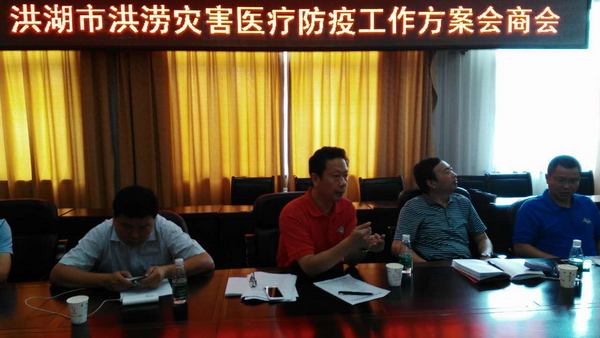7月11日,荊州市疾控中心黨委書記、主任廖強帶領由傳染病防疫、血吸蟲病防疫、消殺、飲用水安全等6名專家組成的第一梯隊帶著消殺藥械趕赴洪湖。到達災區后,立即召開了洪湖抗洪救災防病緊急會議,指導成立應急救援領導小組、應急工作專班、救援隊,研究部署救援方案。