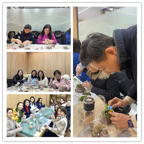 本次微景觀DIY制作活動的開展,有助于緩解大家的視疲勞,減輕緊張工作帶來的精神壓力,放松身心,在親近自然的同時,也提升了自身的藝術修養,促進了職工之間的協作和交流,從而共同營造更加和諧融洽的工作氛圍。