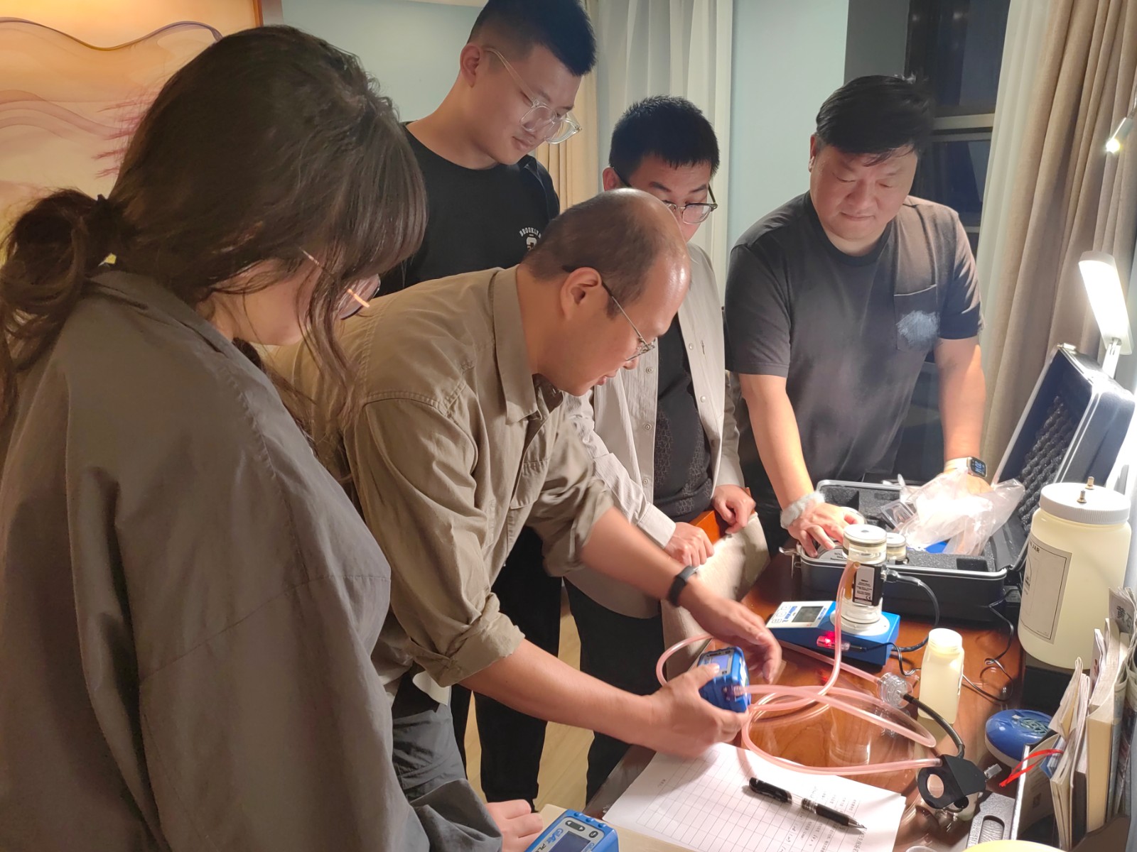 在黃石市西塞山區(qū),為提高工作效率,省疾控中心職業(yè)衛(wèi)生部帶教老師挑燈夜戰(zhàn),夜晚對學員們講解了詳細的工作方法,白天在實操現(xiàn)場從危害因素的識別到監(jiān)測儀器設(shè)備的使用、檢測采樣點的選取進行了手把手帶教,同時有效幫助了相關(guān)化工企業(yè)職業(yè)病危害場所定期檢測工作。