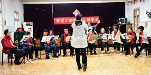 聯歡會在器樂合奏《金蛇狂舞》、《喜洋洋》、《洪水浪打浪》的悠揚樂曲中拉開序幕。