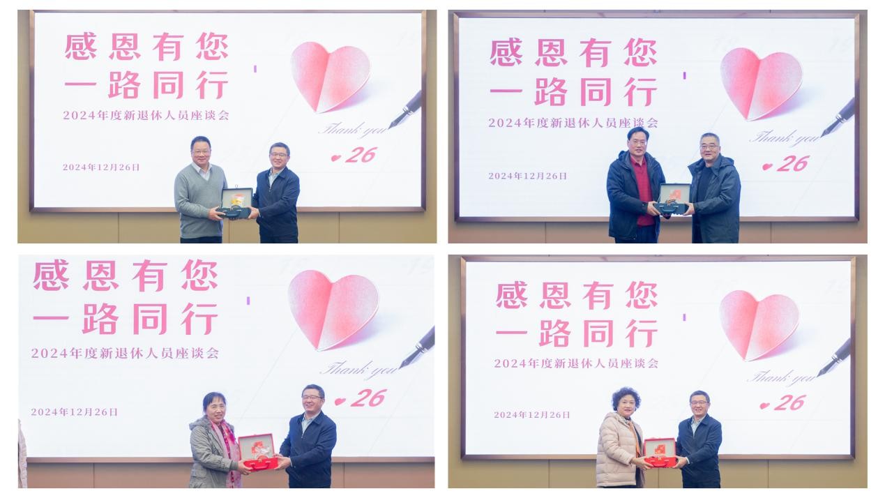 最后,黨委書記朱洪波同志和中心(院)副主任李陽同志向退休人員頒發(fā)了“榮休紀念”紀念杯,并共同合影留念,記錄這一難忘的時刻。