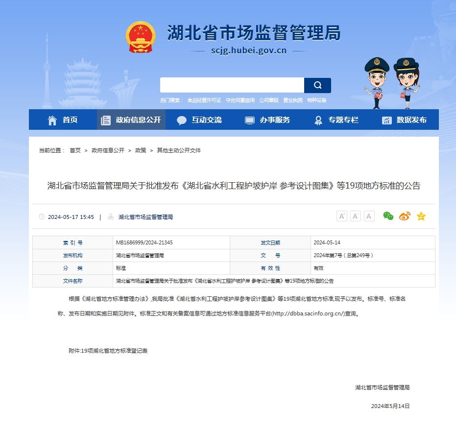 2024年5月14日,湖北省市場監督管理局發布“湖北省市場監督管理局關于批準發布《湖北省水利工程護坡護岸 參考設計圖集》等19項地方標準的公告”,其中《實驗用貓 第1部分:微生物學等級及監測》、《實驗用貓 第2部分:寄生蟲學等級及監測》和《實驗用貓 第3部分:飼養與管理》三個標準由我單位牽頭起草,該標準為我省實驗動物類第一個地方標準,將有力促進我省實驗用貓生產和使用的標準化。