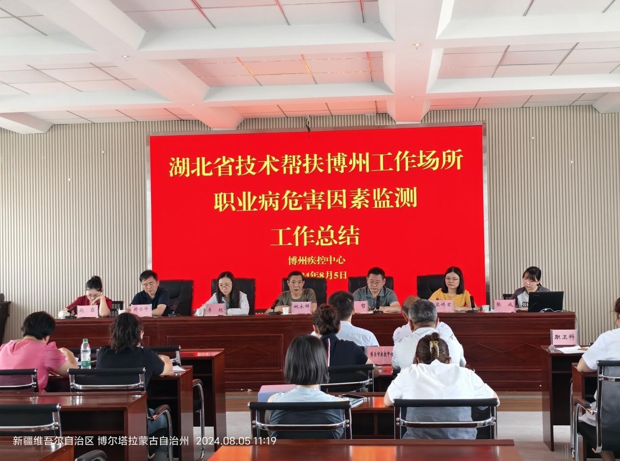 2024年7月24日-8月7日,按照中疾控職衛(wèi)所統(tǒng)一安排,中心(院)選派衛(wèi)監(jiān)所職衛(wèi)部姚永祥、彭哲、李艷,武漢市職防院梁嬌君、張成,宜昌市疾控中心趙露及黃石市疾控中心鄭登峰組隊(duì)前往新疆博爾塔拉蒙古自治州開(kāi)展職業(yè)健康技術(shù)幫扶工作。
