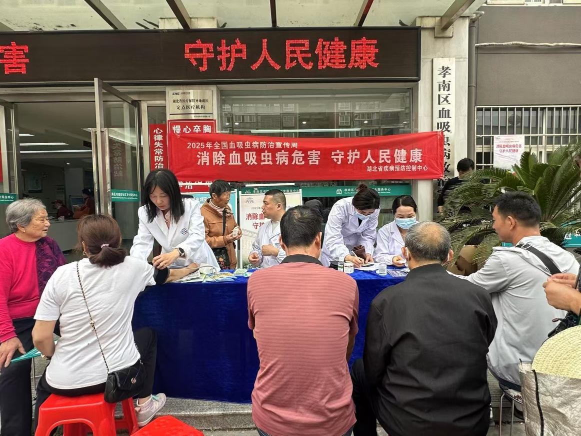 4月10日,省疾控中心血防所聯合孝感市疾控中心、孝南區血防所,組織專業人員一起走進社區、學校、企業,開展血防健康教育宣傳活動,凝聚全社會力量,共同筑牢健康防線。