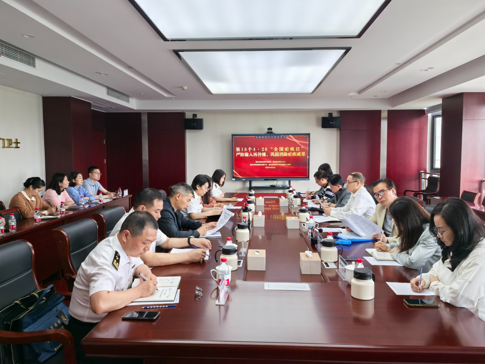 湖北省商務(wù)廳、湖北省文旅廳、武漢海關(guān)、湖北省疾控局,湖北國際旅行衛(wèi)生保健中心和湖北省疾控中心血防所相關(guān)負(fù)責(zé)同志參加了座談會,會議由省疾控局衛(wèi)免處二級調(diào)研員吳江主持。省疾控局衛(wèi)免處處長唐平首先傳達(dá)了國家疾控局關(guān)于開展2025年全國瘧疾日宣傳活動的文件精神和我省開展宣傳活動的相關(guān)要求。省疾控中心血防所寄防部副主任夏菁介紹了全省2024年輸入性瘧疾防控情況。武漢海關(guān)衛(wèi)生檢疫處副處長杜順晶介紹了輸入性瘧疾前沿關(guān)口防控工作情況。隨后,省商務(wù)廳代表、省文旅廳代表結(jié)合部門工作實際,根據(jù)我省目前瘧疾防控工作的形勢,提出了工作需求與下一步工作的協(xié)作建議。省疾控中心血防所所長劉斯提出了在實際防控工作中,需多部門加強協(xié)作的建議和具體措施。省疾控局衛(wèi)免處處長唐平在會議總結(jié)中強調(diào):我國雖已消除瘧疾,但是隨著“一帶一路”倡議的不斷推進(jìn),我省輸入性瘧疾的防控壓力持續(xù)存在。群眾健康無小事,省疾控中心等相關(guān)部門應(yīng)持續(xù)發(fā)揮能動性,為各部門提供所需的專業(yè)技術(shù)支持。省疾控局將進(jìn)一步提升聯(lián)防聯(lián)控部門合作機制的運行效率,將輸入性瘧疾防控的關(guān)口前移,做到早發(fā)現(xiàn)、早處置,持續(xù)鞏固全省消除瘧疾成果。