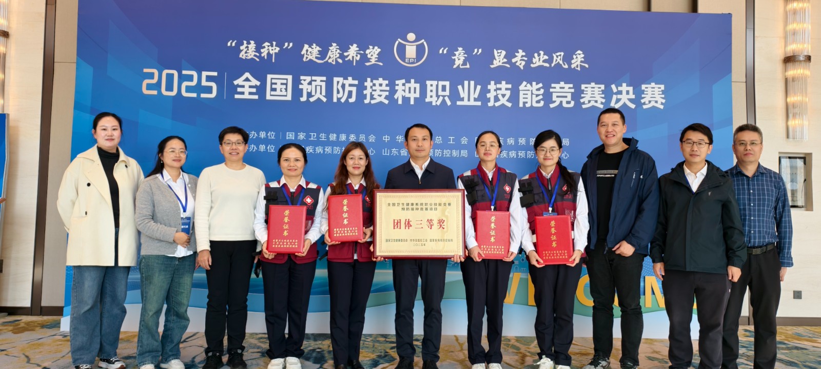 11月11日至12日,由國家衛(wèi)生健康委、中華全國總工會(huì)、國家疾控局聯(lián)合主辦的2025年全國預(yù)防接種職業(yè)技能競賽決賽在山東青島舉行。全國31個(gè)省(自治區(qū)、直轄市)及新疆生產(chǎn)建設(shè)兵團(tuán)共32支隊(duì)伍、128名參賽隊(duì)員同場競技。經(jīng)過激烈角逐,湖北代表隊(duì)?wèi){借扎實(shí)的專業(yè)知識(shí)和技能,最終脫穎而出,榮獲團(tuán)體三等獎(jiǎng)(全國第9名)和4項(xiàng)個(gè)人獎(jiǎng)的優(yōu)異成績,展現(xiàn)了荊楚預(yù)防接種隊(duì)伍的過硬實(shí)力。